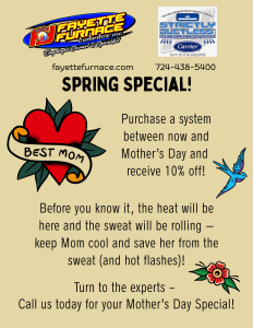 Let Fayette Furnace help you step up your home efficiency with a wide range of air conditioning and heating products, services and our skilled team of technicians. An employee owned company since 1920; we pride ourselves on continuing a longstanding tradition of honesty, professionalism and expertise. Call and ask about our service maintenance agreements to save money on maintenance and emergency calls. A yearly service is recommended per the manufacturer’s warranty on the equipment.